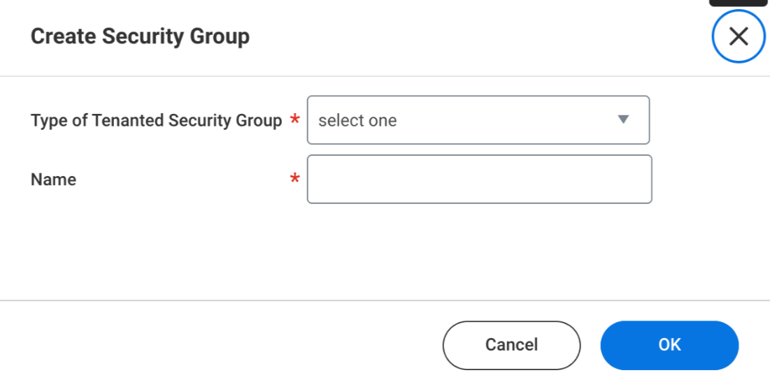 In the Workday search bar,enter Create Security Group and select the task.