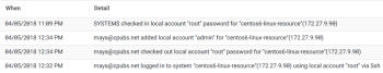 You can click Activity to review recent activity, such as password check out and check in activity, for the selected system. For example, if a user has successfully logged on to the selected system using a shared account, checked out an account password, and had a failed logon attempt, you would see information about each of those successful and failed operations. The specific details listed for the system activity audit trail depend on the specific operations that have been most recently performed.