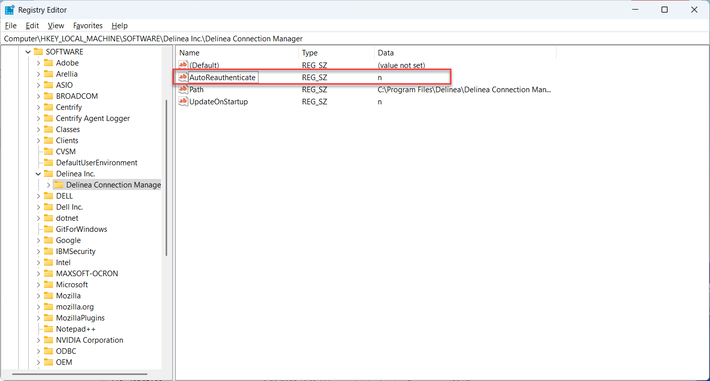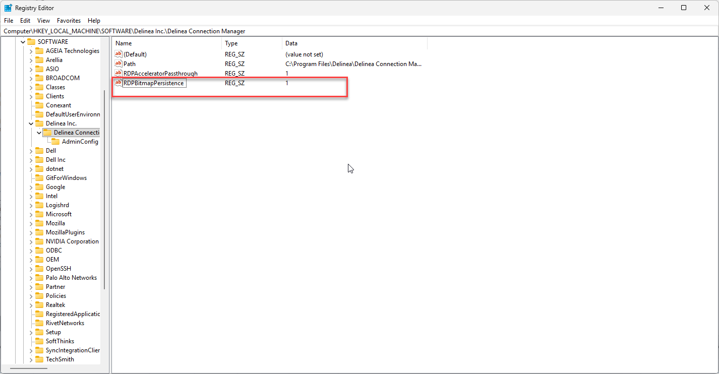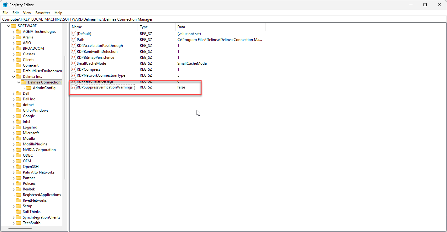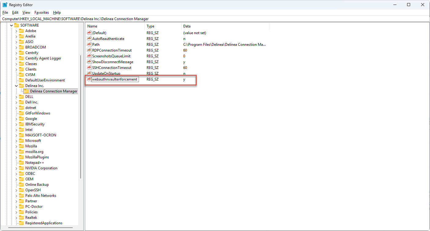 Computer\HKEY_LOCAL_MACHINE\SOFTWARE\Delinea Inc.\Delinea Connection Manager