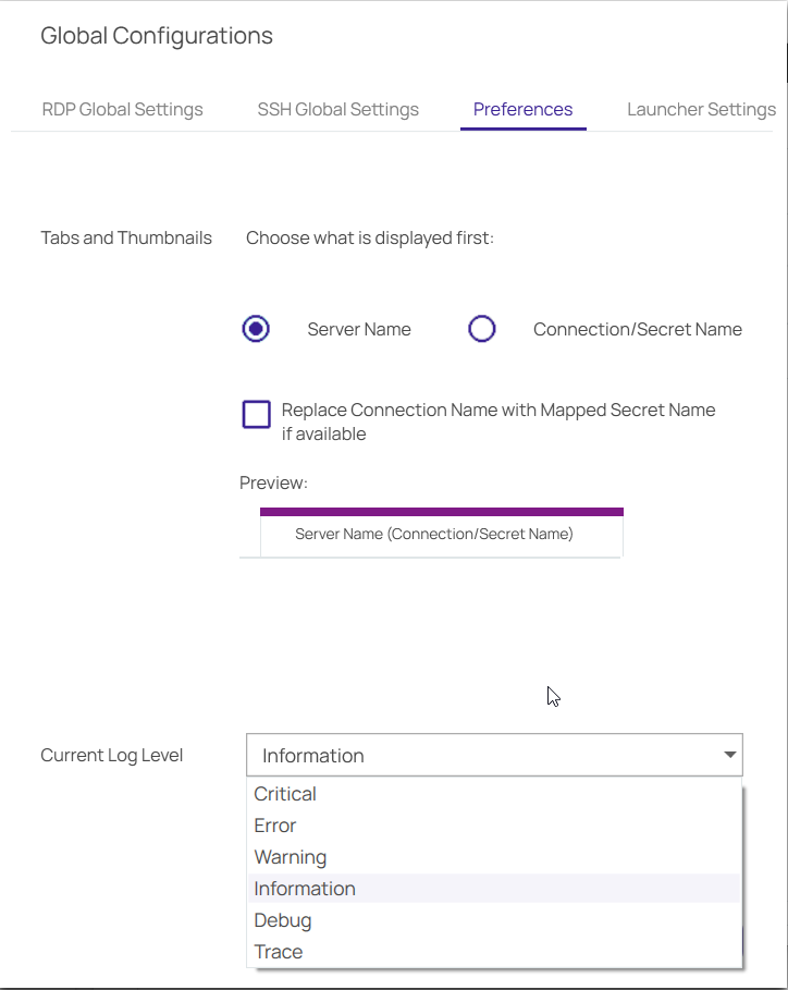 defaults write com.Delinea.ConnectionManager Log.FileLevel Debug
