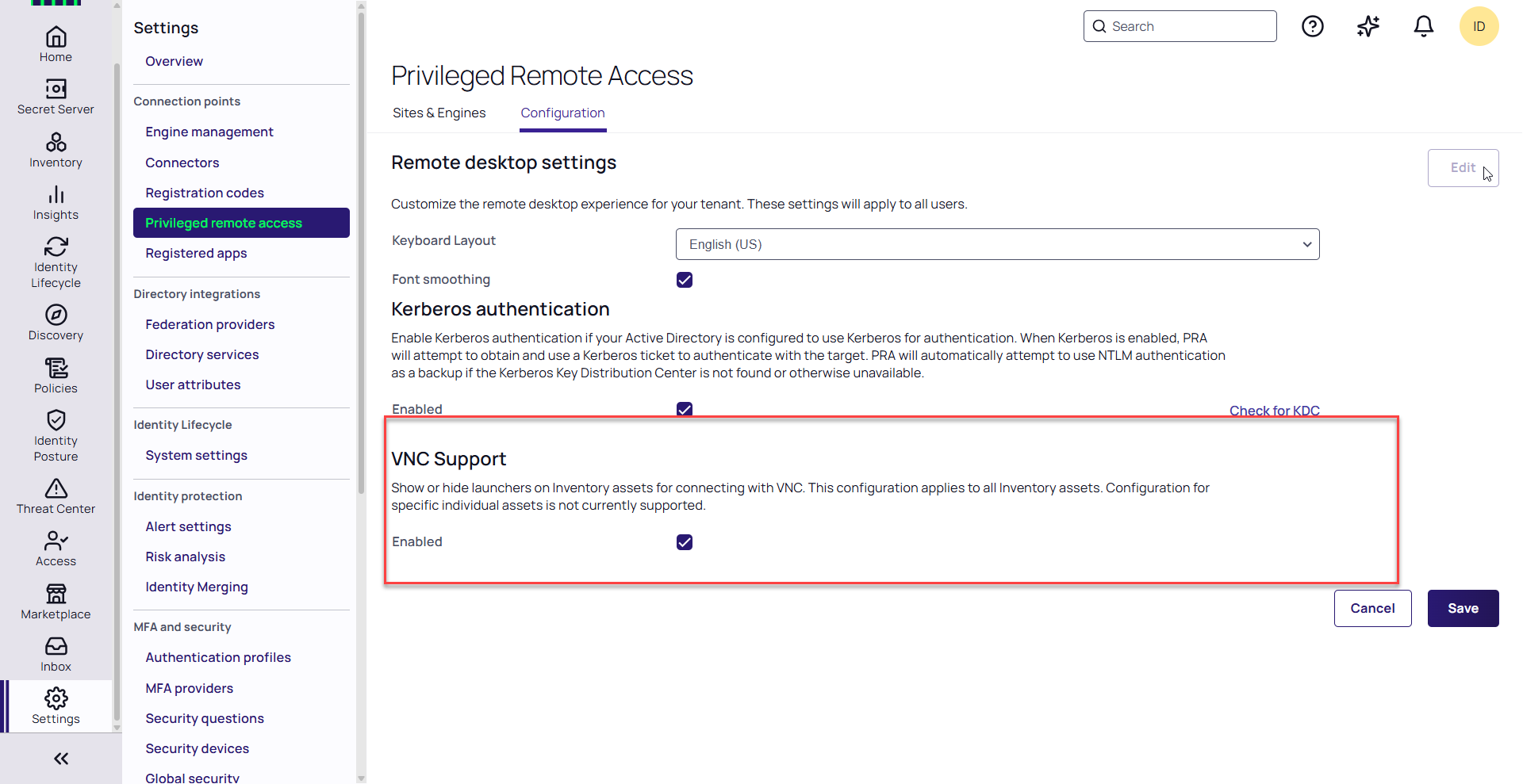 On the Privileged Remote Access page, click the Configuration tab.