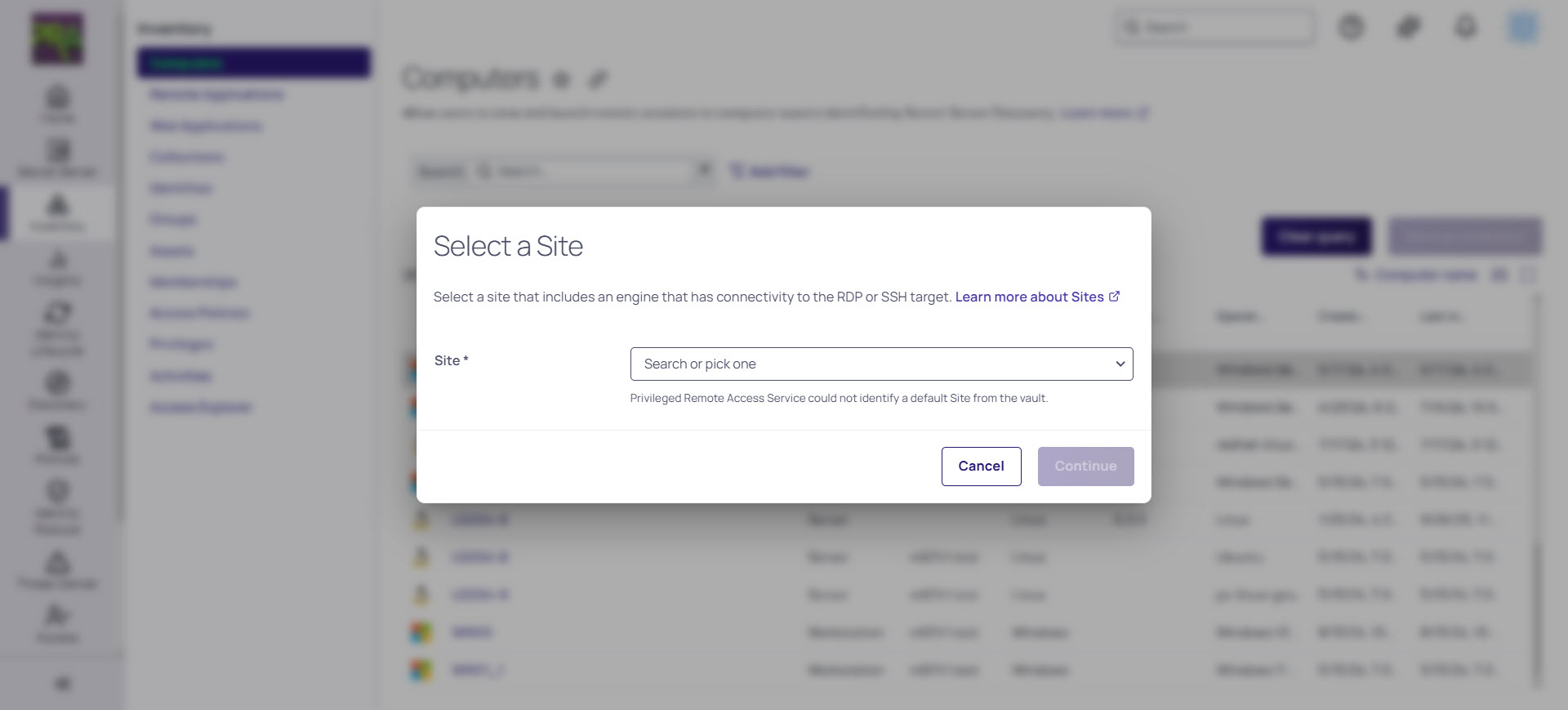 You will be prompted to select a site if you have more than one Platform site with PRA workloads.