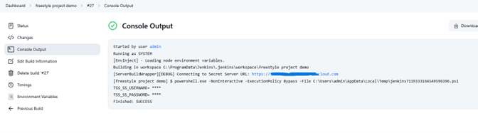 This topic provides steps to verify that the Delinea Secret Server Platform plugin successfully fetches the credentials from a specified secret in Secret Server or the Delinea Platform through a configured Pipeline or Freestyle project in Jenkins.