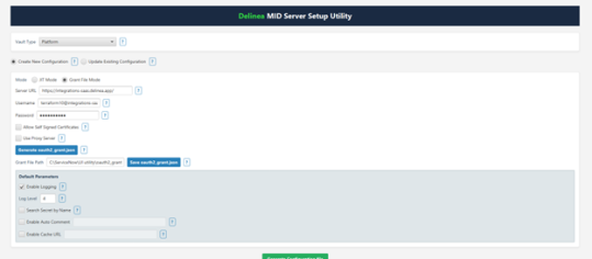 The Grant File Mode in the Delinea MidServer Setup Utility allows you to authenticate with the Delinea Platform using an OAuth2 grant file. This mode encrypts your credentials and produces both an oauth2_grant.json file and a config.xml file for your MID Server.