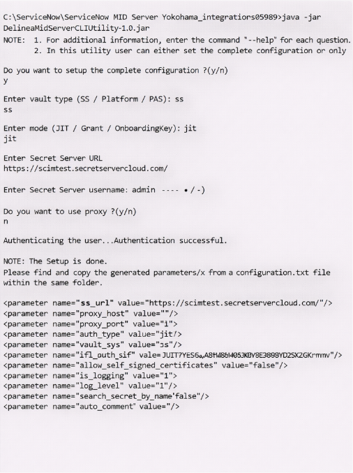 java -jar DelineaMidServerCLIUtility-1.0.jar vault_type ss_url username password proxy_host proxy_port proxy_username proxy_passwordcommand. -