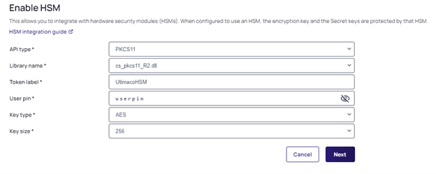In HSM Configuration, enable HSM if you haven't already.