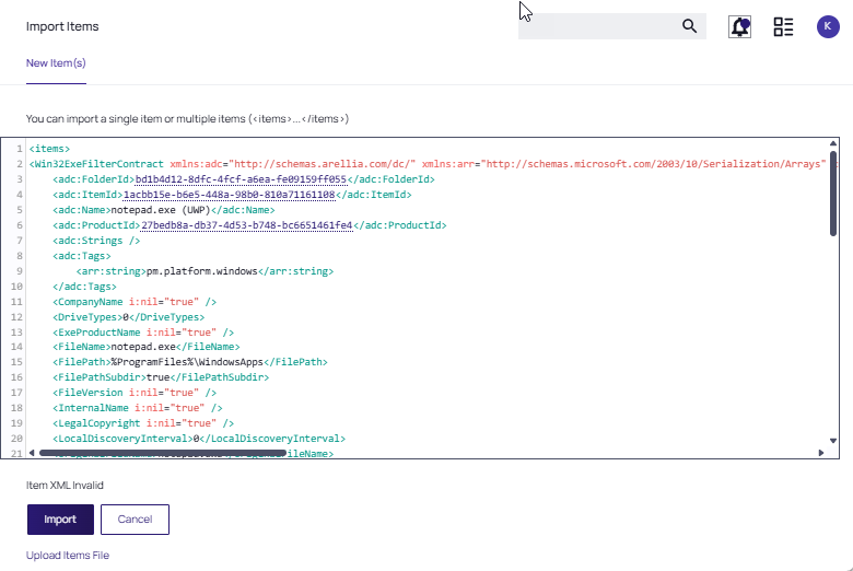 1. Navigate to Admin | Import Items.The XML viewer opens.
