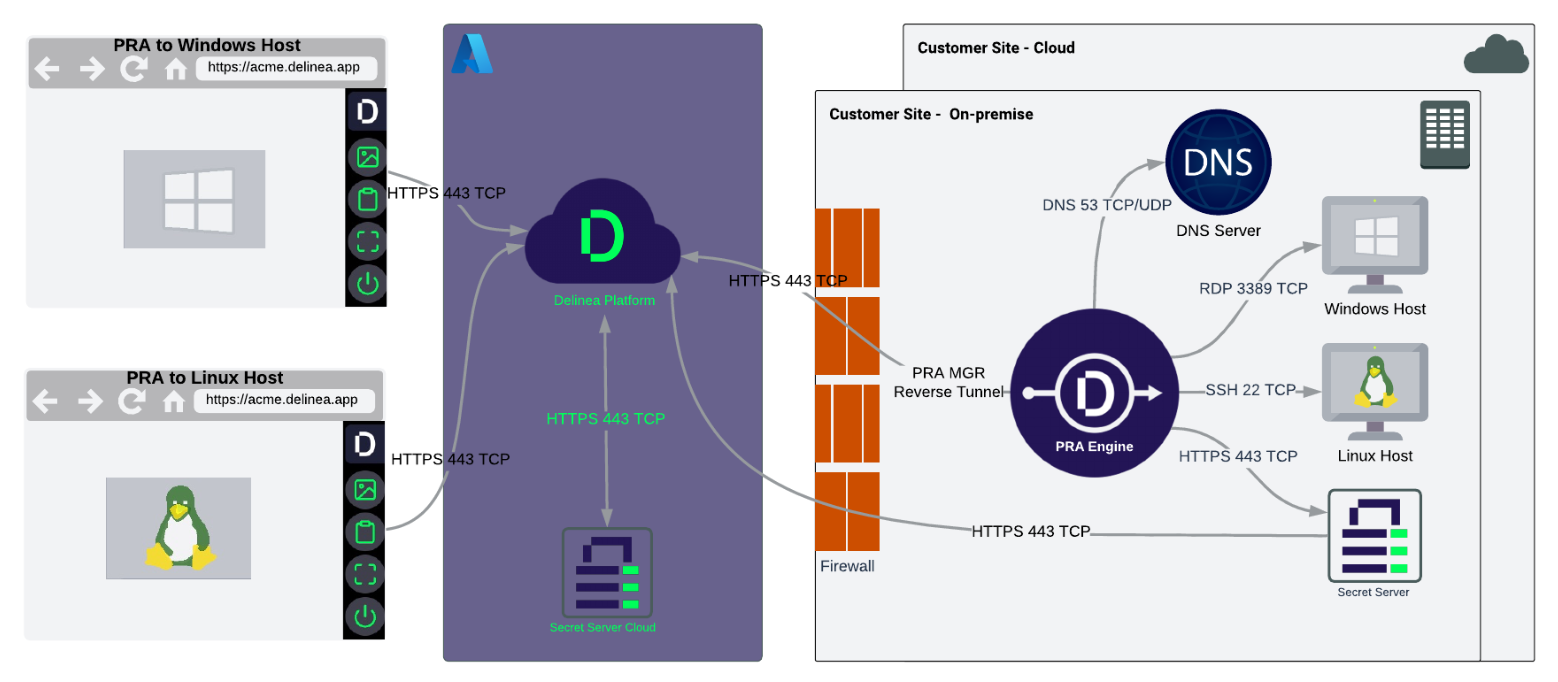 The Delinea Privileged Remote Access (PRA) provides seamless access to remote machines through RDP and SSH, without the need for a VPN. Privileged Remote Access (PRA) leverages a Platform Engine that runs on customer premises.