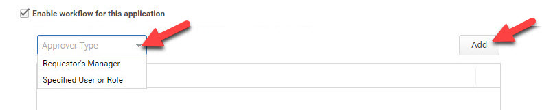 Select an application and click Workflow to select the role into which requestor's who are approved will be placed.