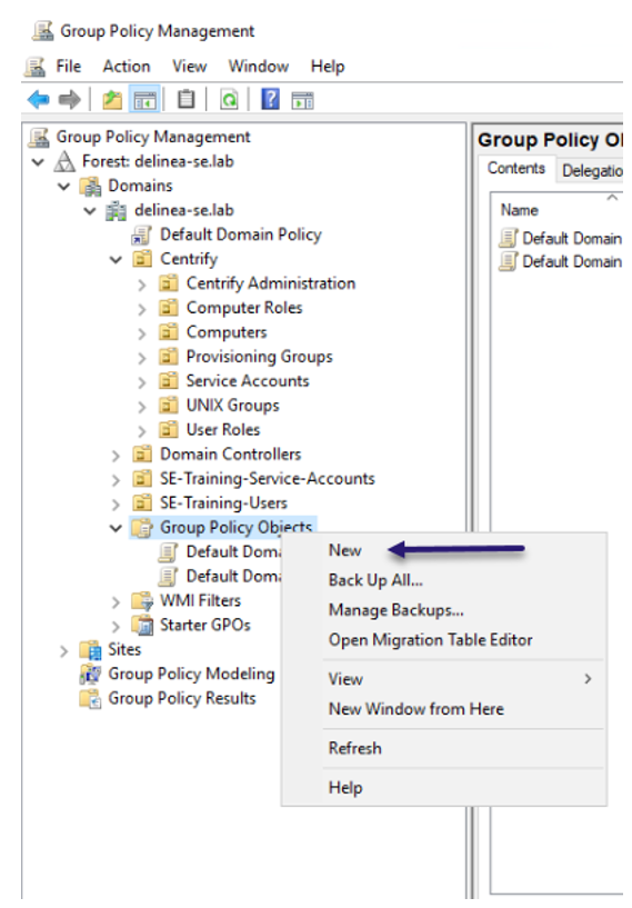 Right click Group Policy Objects, and select New.