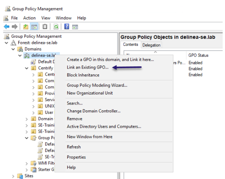 Select Link an Existing GPO...