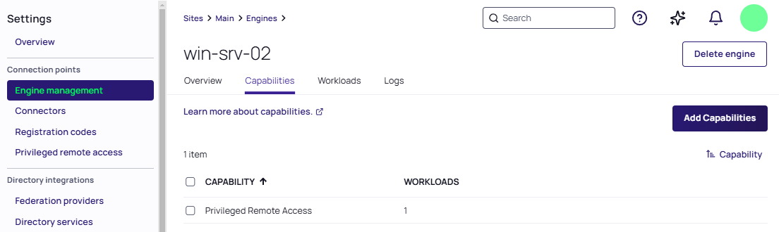 | Engine | A system daemon that runs on an endpoint and exchanges data with the Delinea Platform. It sends information about the engine’s application and capabilities, and it receives information about the applications and workloads it needs to execute. It executes the workloads and reports status to the platform. |