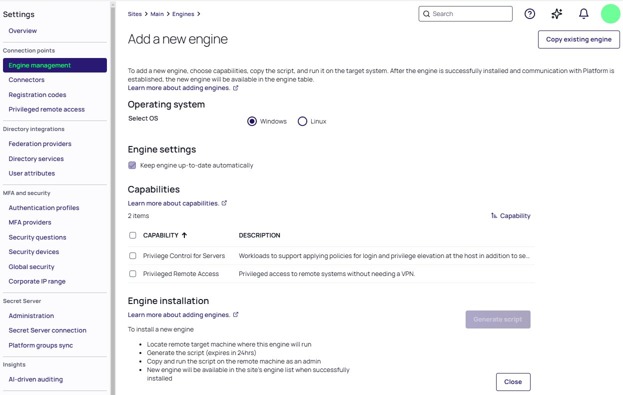 Delinea Platform Engine Management