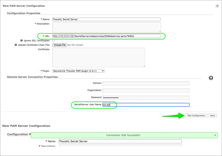 Description (required) - description of the configuration URL (required) - URL for the Delinea wsdl