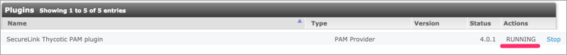 Confirm that the Delinea Plugin is in the Plugins list and is running. The version may not match the following example. If the status is not RUNNING click the Start link.