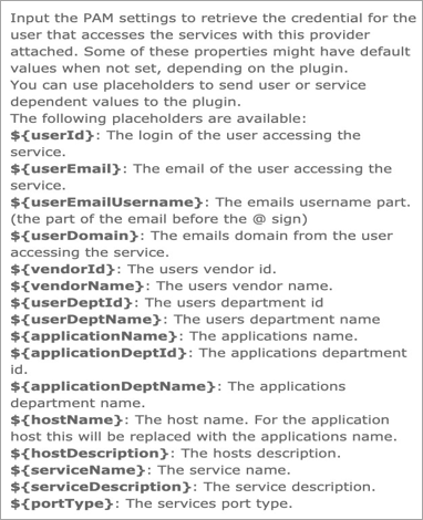 ${userDeptId} The user's department id $ ${userDeptName} The user's department name ${applicationName} The name of the application Match the Application name in SecureLink to the Secret Name field of an account in Secret Server.