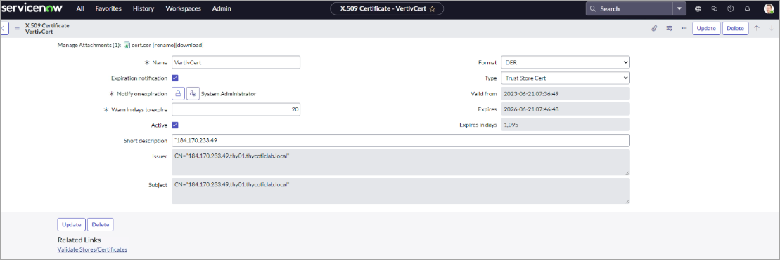 If the certificate is valid but not recognized by ServiceNow, import the CA certificate into the ServiceNow instance.