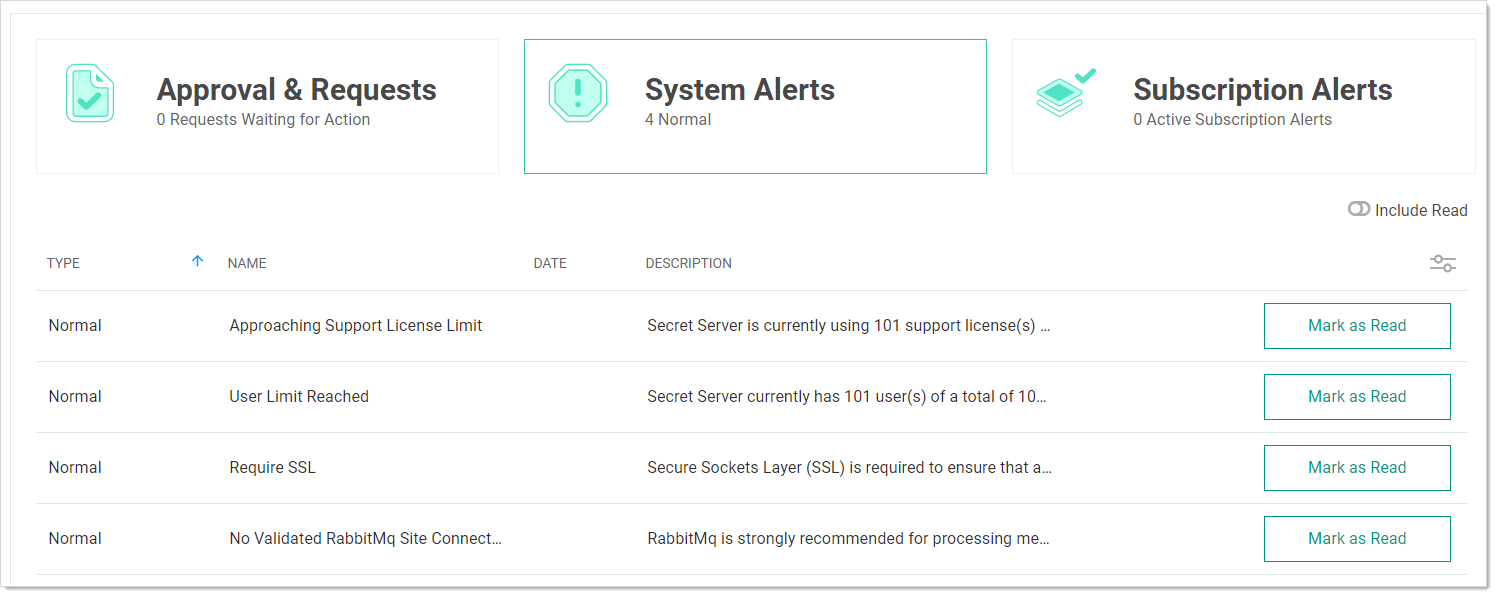 Click the Mark as Read button for the each alert you no longer wish to view. The alert disappears, but you can still see it if you click the Include Read toggle button.