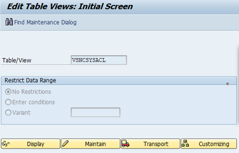 VSNCSYSACLin the Table/View text box. -