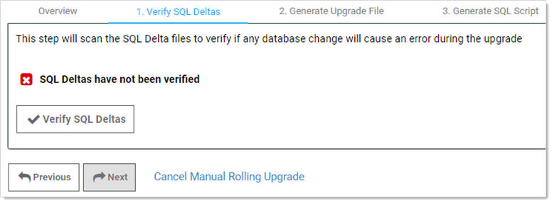 Click the Verify SQL Deltas button. This tests the prospective changes to see if errors result. If errors result, please contact Delinea Technical Support. If the verification succeeds: