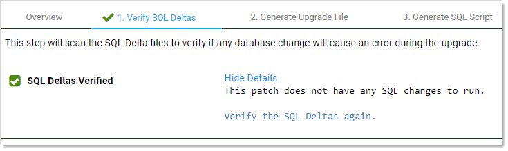 Click the Next Button. The Verify SQL Deltas tab appears: