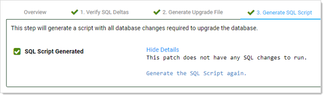 Click the Generate SQL Script button. This generates script file with all the database changes needed to upgrade the database. When finished: