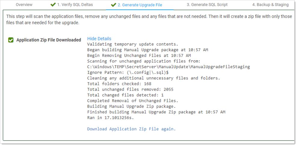Click the Download Application Zip File button. This generates a zip file with only the changed files needed to upgrade the application files on the Web server nodes.
