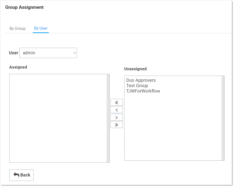 Alternatively, you can click the By User tab and manage the groups for a single user: