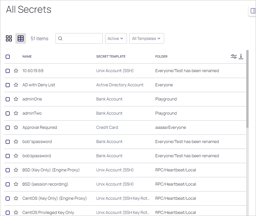 button. The All Secrets table only displays matching secrets. Searches search for all text-entry fields that are configured as searchable on the secret's template if the extended search indexer is enabled.If the search indexer is not enabled, searches are only performed on the Secret Name text field.