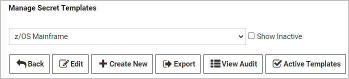 2. On the Manage Secret Templates page, select the z/OS Mainframe template from the drop-down list.