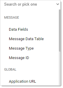In addition to directly editing the HTML, you can insert variables by clicking the Search or pick one dropdown list:
