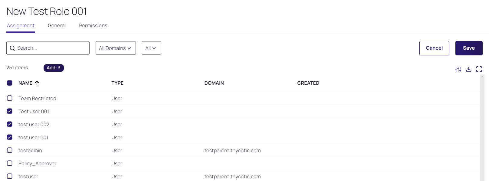 Under the Assignments tab, click Edit, select All next to the search box, select the users that you would like to assign to the role, and click Save.