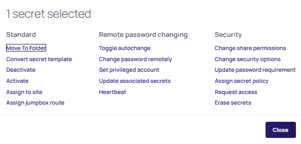 Assign the Erase Secret permission to the secret you just created by accessing the Permissions tab for the role and selecting Edit: