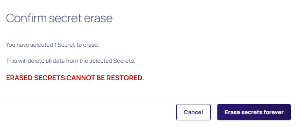 Ensure the following requirements are met for the secret you intend to erase. Ensure the secret: