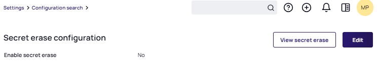 Go to Settings > Configuration search > Secret erase configuration: