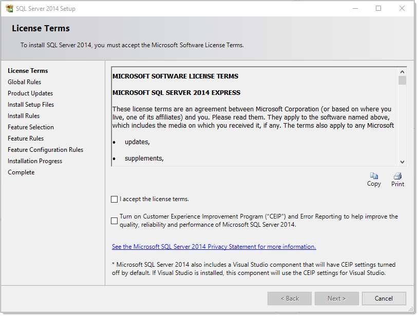 SQL Server 2014 Express Edition Installation