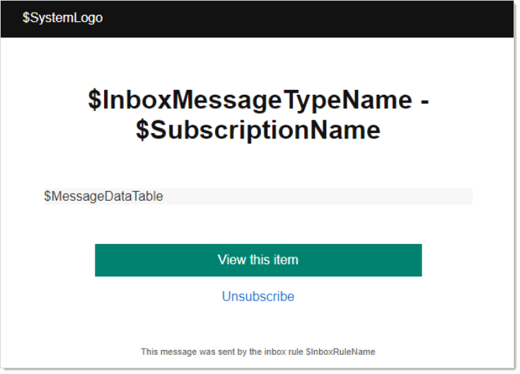 $InboxRuleNamewas replaced by the inbox rule that sent the message. In this case, it is the same name as the inbox template type—Event Subscription. -