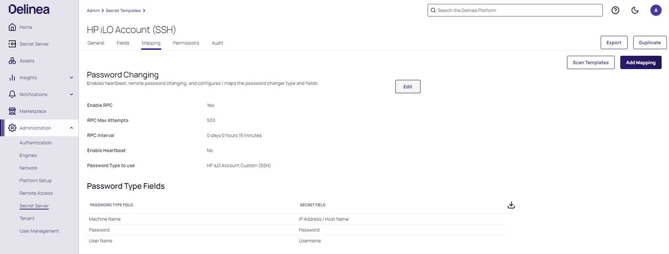 Select an HP iLO secret template and then click the Mapping tab.