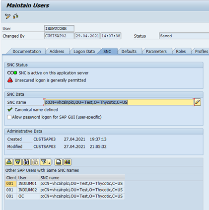 snc/enable = 1snc/gssapi_lib = /usr/sap/NPL/SYS/exe/run/libsapcrypto.sosnc/identity/as = p:CN=vhcalnplci,OU=Test,O=Thycotic,C=USsnc/accept_insecure_cpic = 1snc/accept_insecure_gui = 1snc/accept_insecure_r3int_rfc = 1snc/accept_insecure_rfc = 1snc/permit_insecure_start = 1snc/extid_login_diag = 1snc/extid_login_rfc = 1snc/data_protection/min = 1 -
