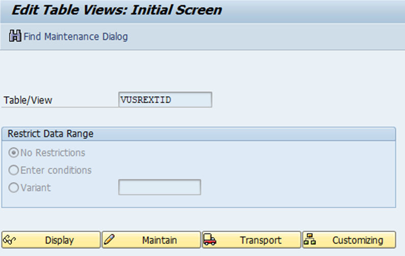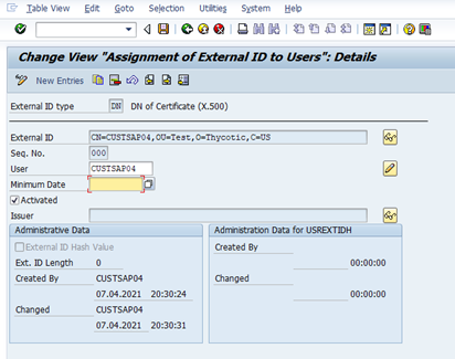 Click the New Entries button. The Change View "Assignment of External ID to Users" panel appears:
