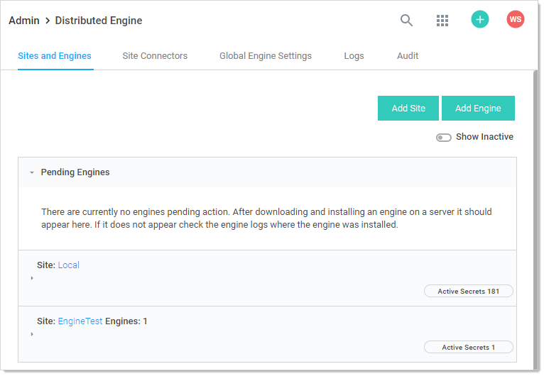 In Secret Server, go to Admin > Distributed Engine. The Distributed Engine Configuration page appears: