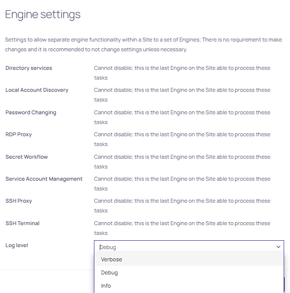 Restart the Thycotic Distributed Engine service to apply the log configuration change.
