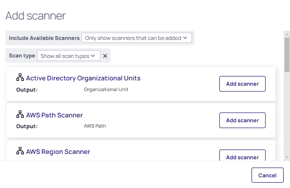 In the discovery source Scanners page, click Add Scanner. The Add Scanner popup appears: