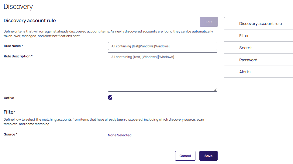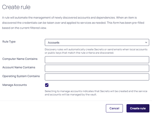 Click Create Rule to save your changes. The Discovery Account Rule page appears: