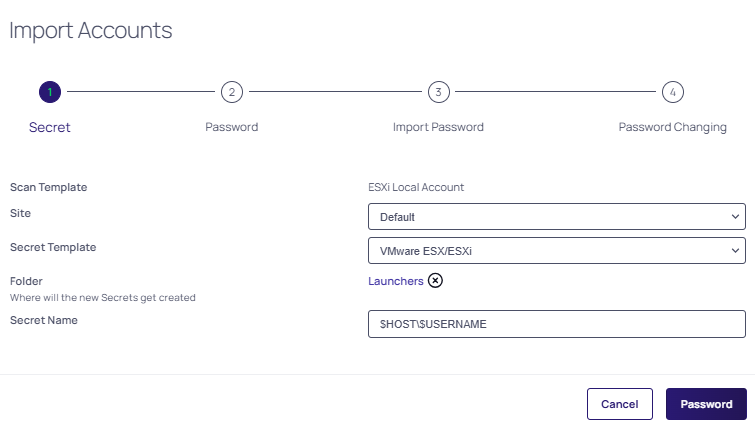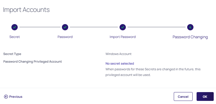 Password Changing Privileged Account: this button allows you to add multiple secrets to modify.
