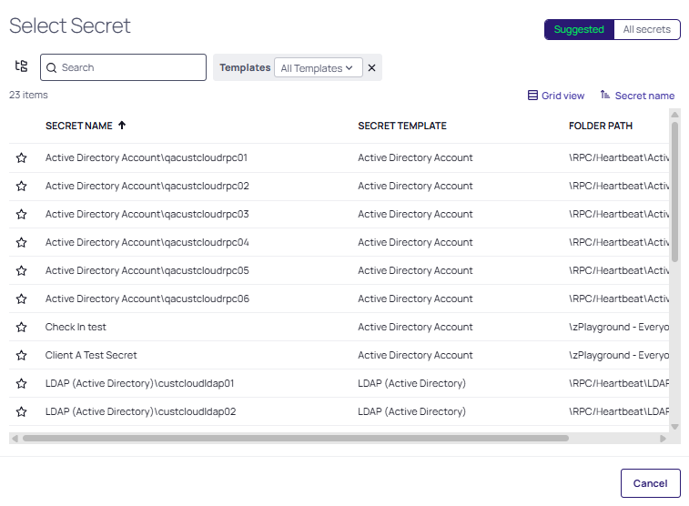 Click Close when done. The new secret will now appear in the folder you designated previously.
