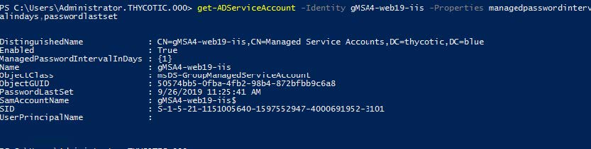Get-ADServiceAccount -Identity gMSA4-web19-iis -Properties passwordlastset,managedpasswordintervalindays
