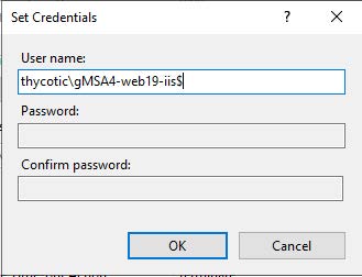 Configuring gMSA accounts for running Secret Servers application pool is possible by following the steps outlined below. While it may be possible to rotate the account used to run Secret Server's application pool with Secret Server itself, it may be preferable and less impactful to customers on their environment to simply create a gMSA (Group Managed Service) account. When the application pool password is updated with the new password via rotation through controlled by Secret Server, the application itself will restart. While this may be scheduled via Secret Server off-hours, this may impact the application unnecessarily. Having the application pool running as a gMSA would not impact the application in this way. Advantages to gMSAs are: