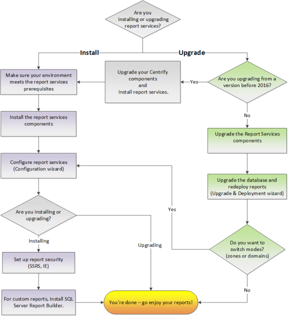| Upgrade & Deployment wizard | Use the Upgrade & Deployment wizard to upgrade your report database and deploy updated reports. For instructions, see Upgrading your report services. |