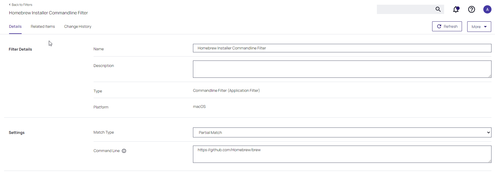 Name the filter and provide a description to reflect the purpose, for example Homebrew Installer Commandline Filter.